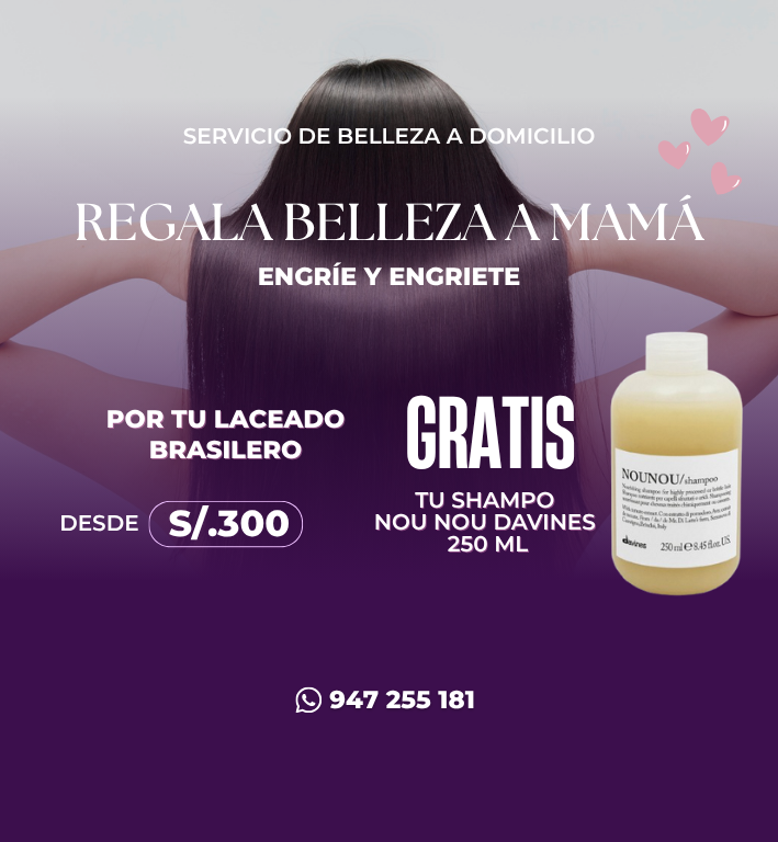 Liso perfecto y saludable. Por el servicio de Laceado Brasilero, mamá recibe gratis un Shampoo NOU NOU de Davines (250 ml).